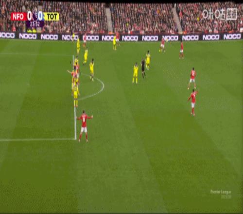 第79分钟,桑加雷接球后不停球轰出精彩世界波,热刺0-3落后森林!